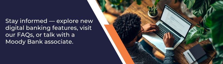 If you have any questions about digital banking, you might try our frequently asked questions about online banking page. You can also contact us or visit one of our convenient locations around Houston, in Austin or Galveston to speak to one of our associates. You can also check out our news page for the latest information on money management and banking.