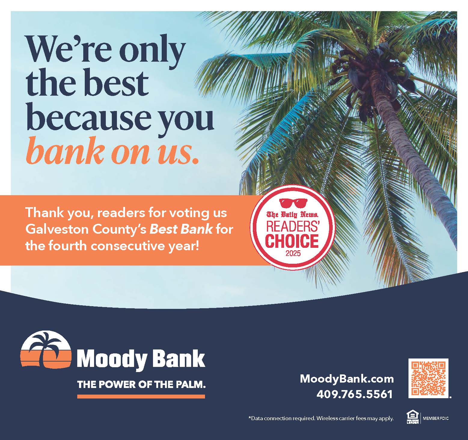 Thank you for choosing Moody Bank. We’re proud to serve you and look forward to growing together for many years to come.